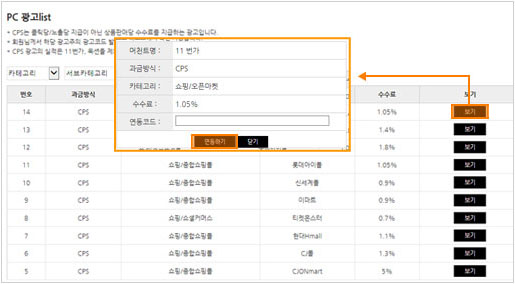 해당 광고주의 CPS 코드를 연동 할 수 있습니다.