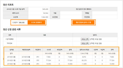 또한 정산담당자 정보가 바뀔 시 직접 수정이 가능하며